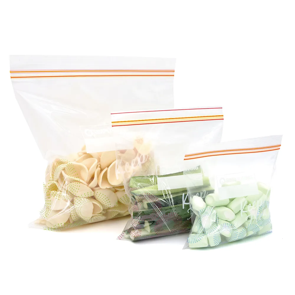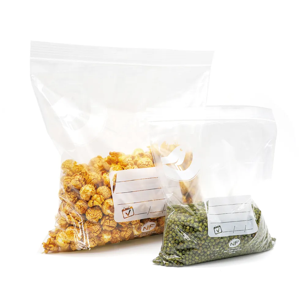 Our Single Zipper Storage Bags are crafted from high-quality Polyethylene (PE) raw materials, ensuring excellent clarity, flexibility, and strength. This specific series is designed for users who require organization and traceability, featuring integrated white writing panels for easy labeling of contents, dates, or instructions.
