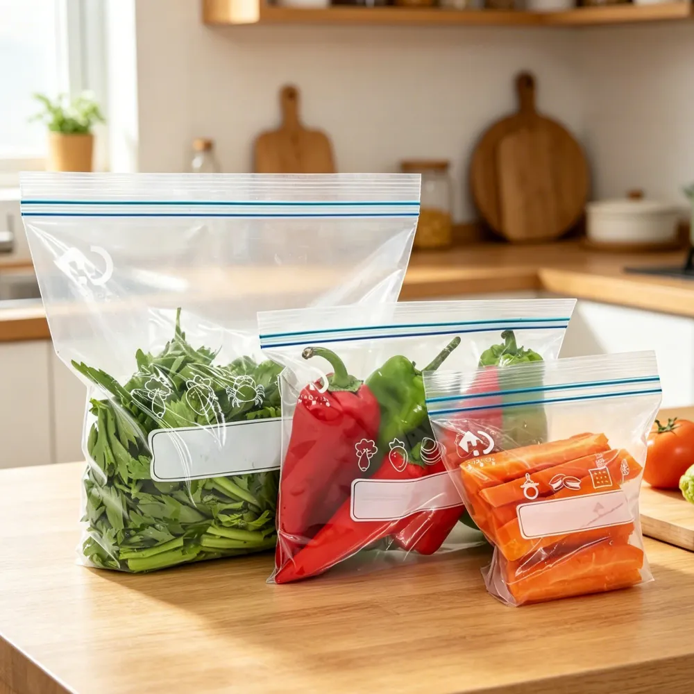 BRC & FDA certified, 100% virgin PE material. Perfect for supermarket produce and kitchen storage. Annual capacity 20,000 tons. Trusted by Disney & SYSCO.